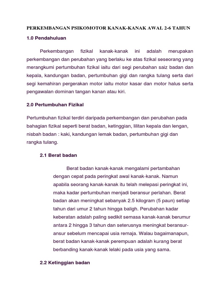 1 0 Pendahuluan Perkembangan Fizikal Kanak Kanak Awal 2 6 Tahun