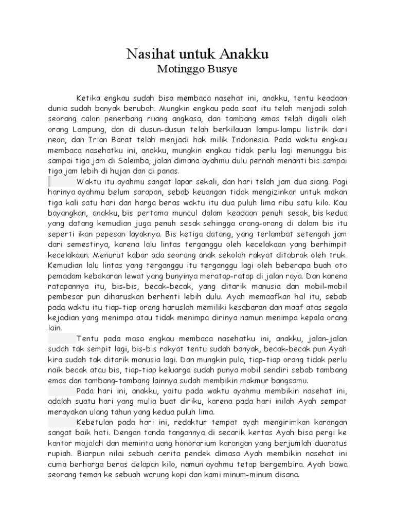Jalan cerita bukanlah plot. Cerpen nasihat untuk anakku adalah cerpen yang ditulis oleh motinggo busye. Admin blog berbagai struktur juga mengumpulkan gambar gambar lainnya terkait struktur teks ulasan nasehat untuk anakku dibawah ini. Cerpen ini adalah satu satunya cerpen buatan motinggo busye.
