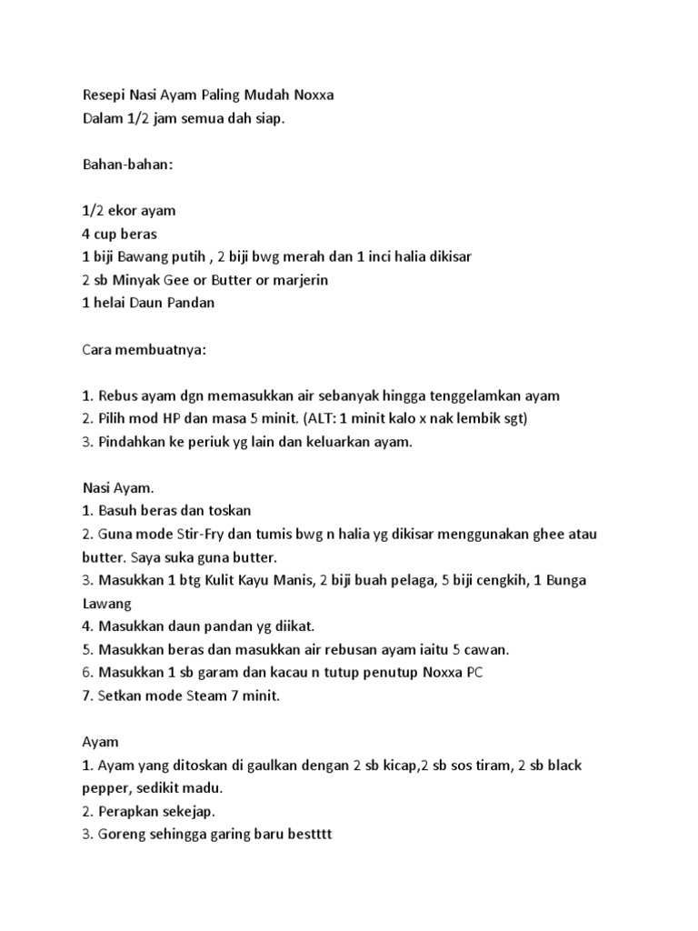 Resepi Nasi Ayam Paling Mudah Noxxa
