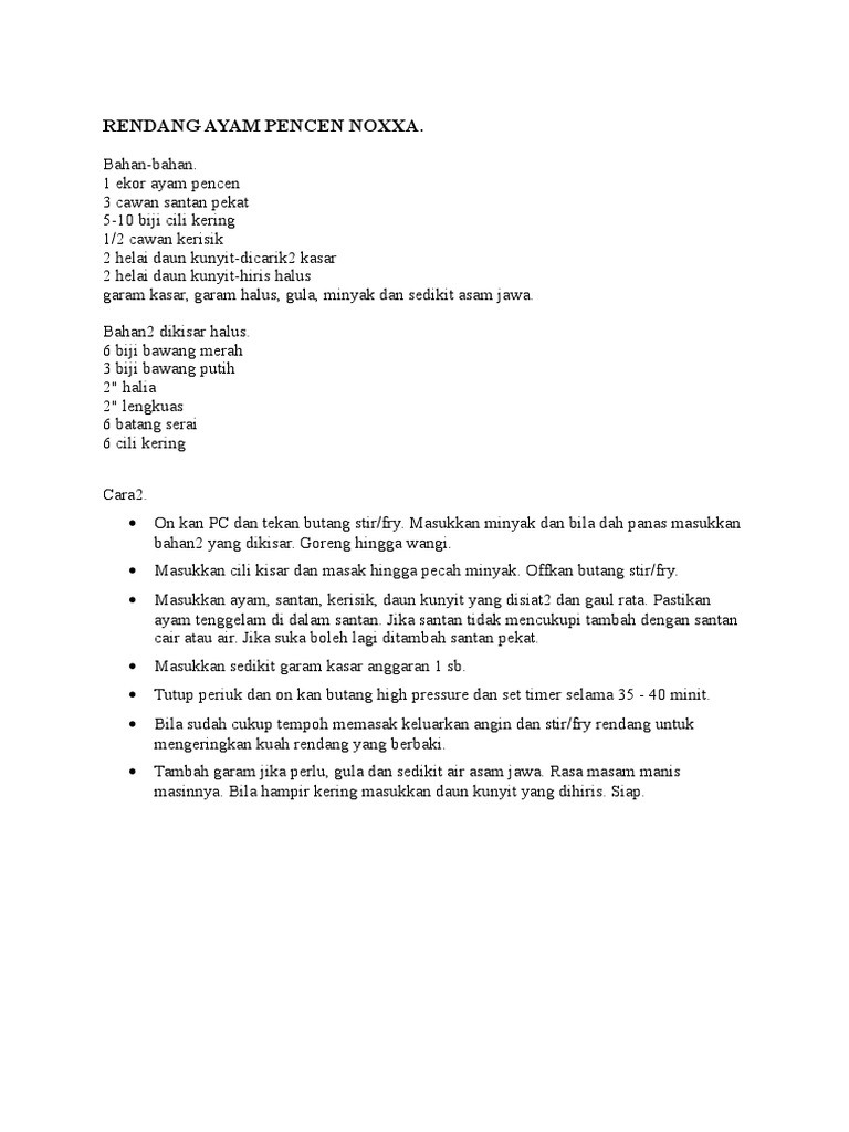 Rendang Ayam Pencen Noxxa Cara Masak Dengan Noxxa