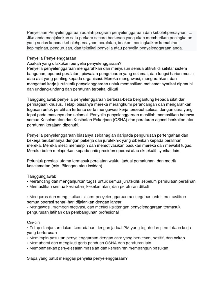 Kertas Penerangan Penyeliaan Penyelenggaraan
