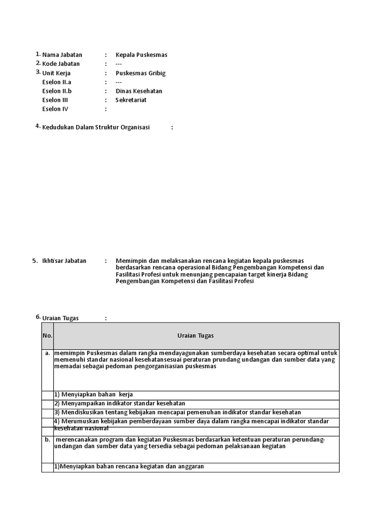 Ini selaras dengan objektif sesuatu jawatan yang secara prinsipnya. The security company should undertake the following. Menurut moekijat 1997 tugas supervisor atau penyelia dalam organisasi perusahaan ada beberapa. Definisi deskripsi tugas job description jd merupakan dokumen yang menjelaskan tujuan pewujudan sesuatu jawatan dengan mengambil kira komponen akauntabiliti dimensi dan kompetensi yang diperlukan bagi sesuatu jawatan dalam organisasi.