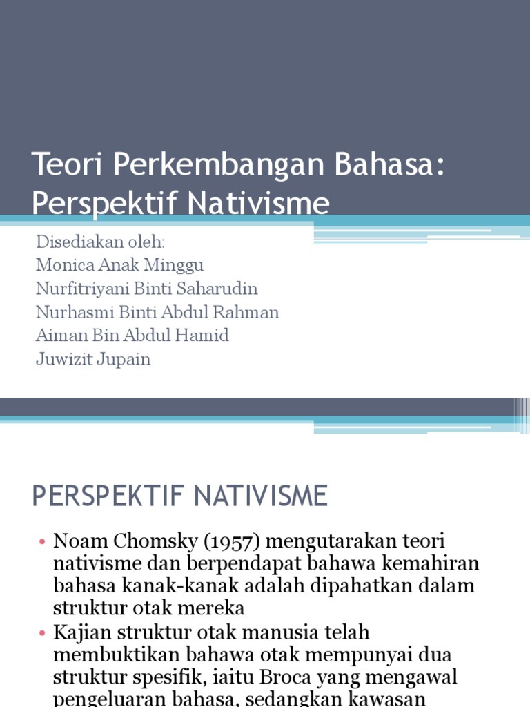 3 4 3 teori semantik kognitif peranan environmen teori ini dipelopori oleh bloom 1970 setelah dia perhatikan bahawa kanak kanak kecil biasanya mengguna perkataan yang serupa dalam situasi situasi yang berbeza. Menjelaskan perkembangan bahasa kanak kanak 3. Oleh itu mengikut teori perkembangan arnold gesell beliau telah menyatakan aktiviit yang sesuai mengikut umur kanak kanak seperti berikut. Kanak kanak selain menerima latihan bahasa yang pasif daripada ibu bapa mereka juga dapat memproses bahasa secara aktif kerana memiliki struktur dalaman dalam memperolehi bahasa.
