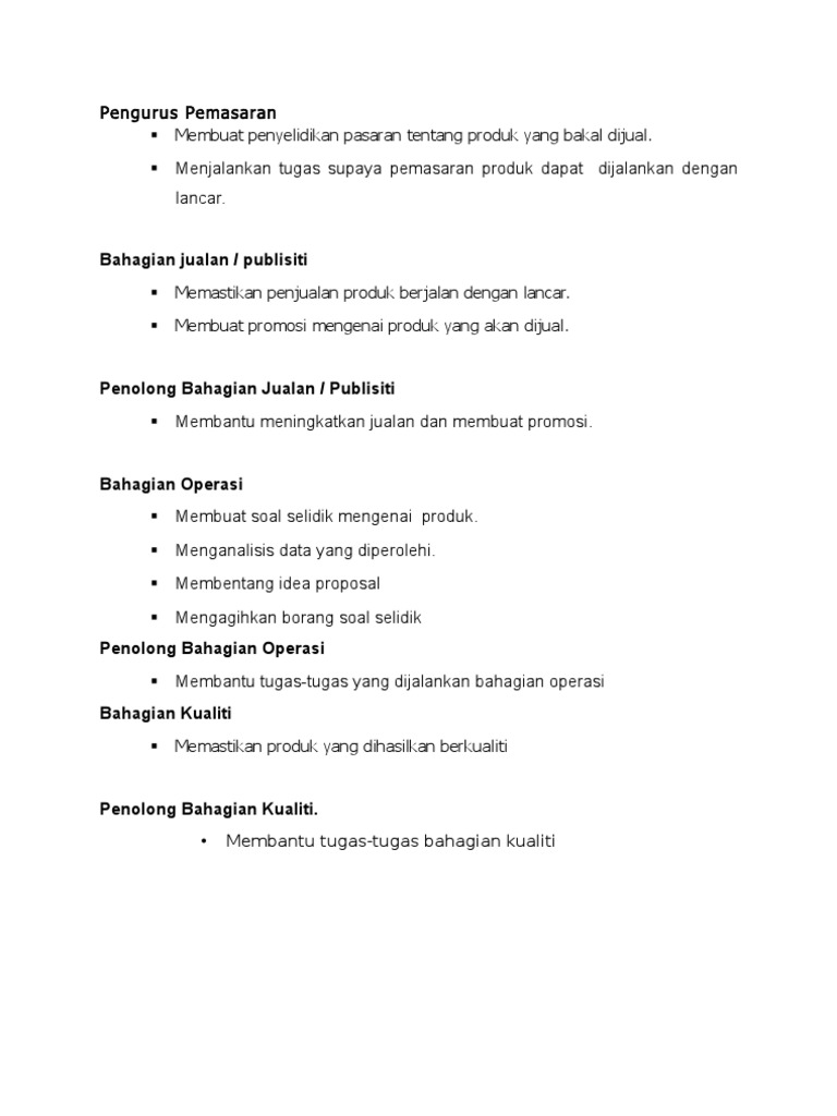 Tugas Pengurus Jualan Dan Pemasaran