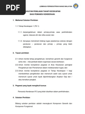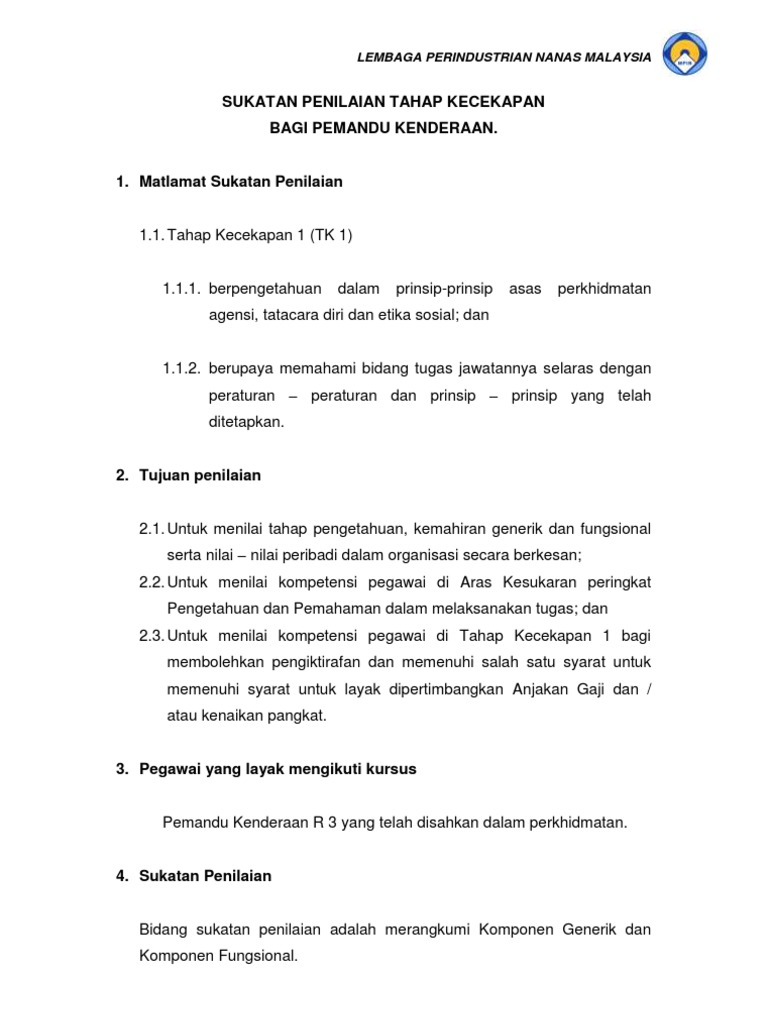 Sukatan Penilaian Tahap Kecekapan Bagi Pemandu Kenderaan