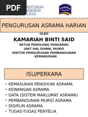 Panduan Waktu Bekerja Huraian Senarai Tugas Penyelia Asrama