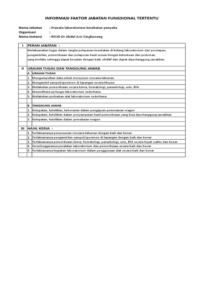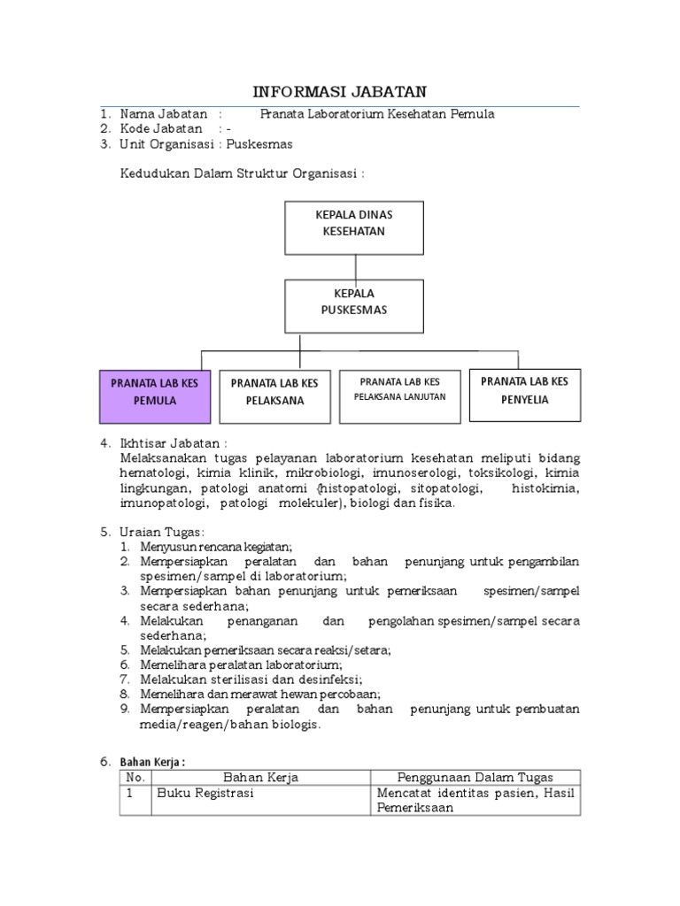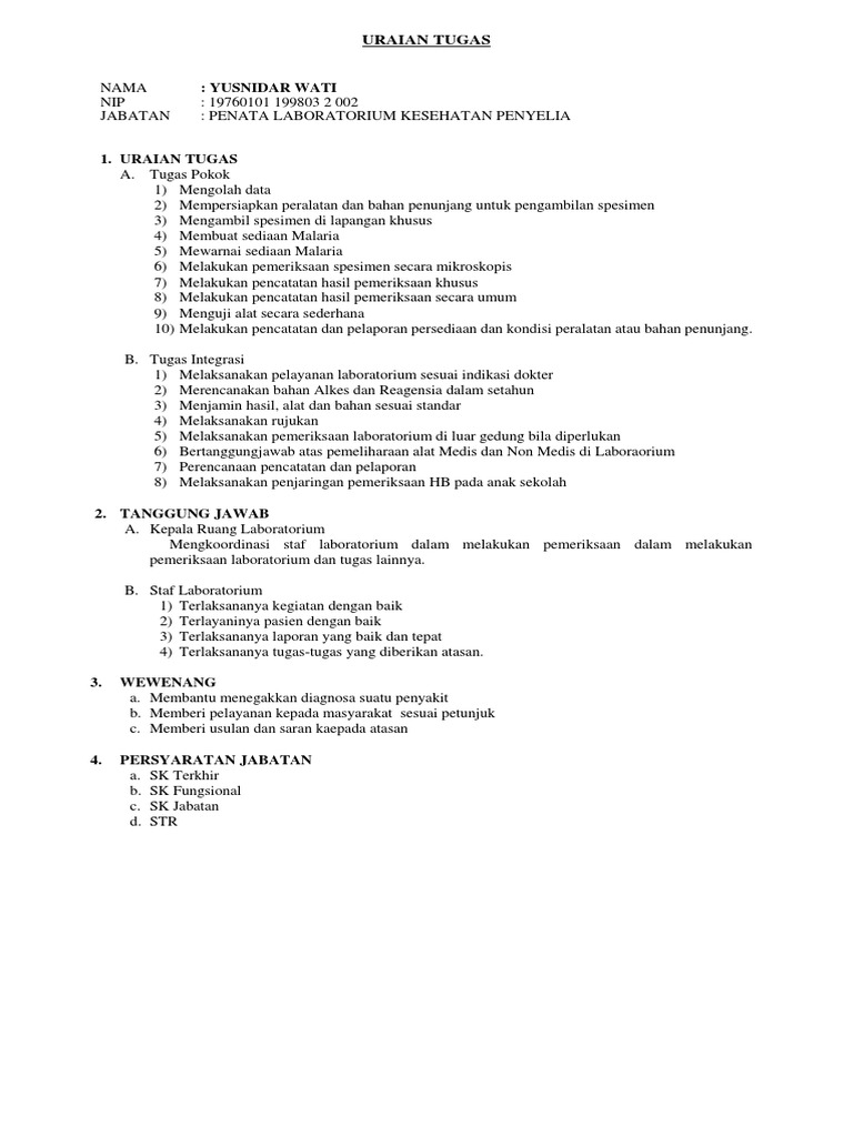Uraian Tugas Pranata Labkes Terampil Penyelia Doc