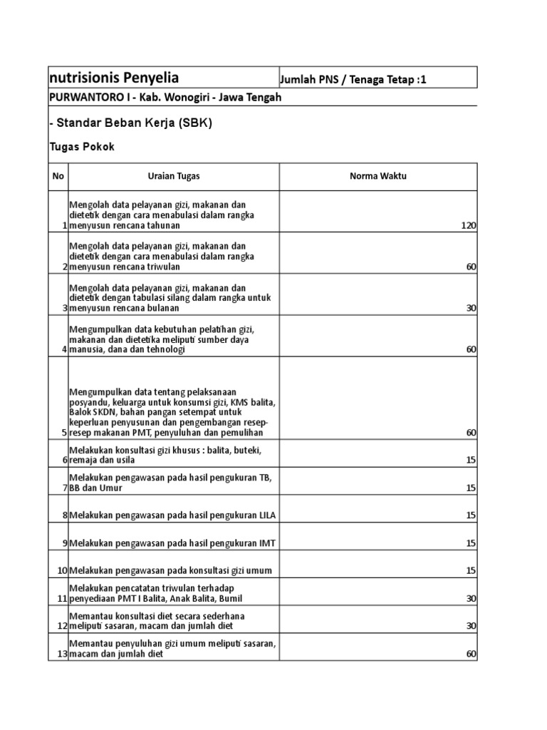 Uraian Tugas Nutrisionis Penyelia Tugas Pokok
