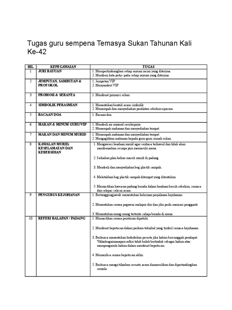 26833722 Bidang Tugas Jawatankuasa Pengelola Temasya Sukan Tahunan