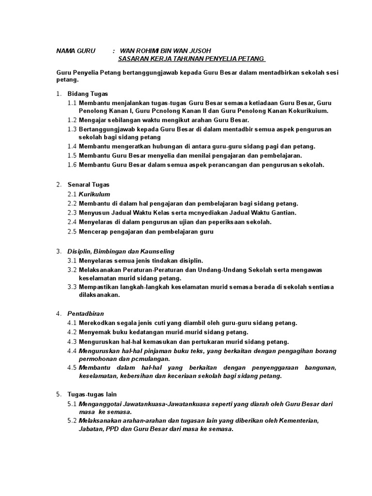 Bidang tugas guru senarai tugas guru kelas 1. Membimbing murid memperolehi ilmu kemahiran dan mengamalkan sikap positif. Mengendalikan pengajaran dan pembelajaran p p dengan berkesan. Menagihkan tugas tugas kepada staf bukan guru sesi petang f.