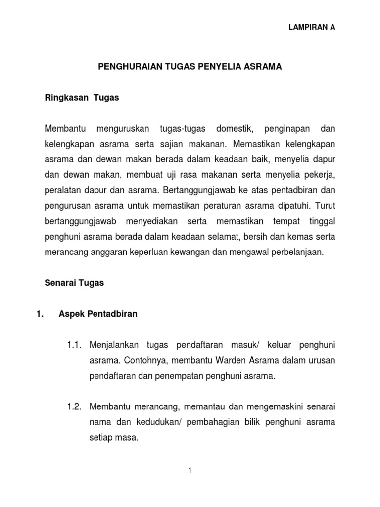 Panduan Waktu Bekerja Huraian Senarai Tugas Penyelia Asrama Pembantu Pengurusan Murid Asrama Kpm Pdf Document