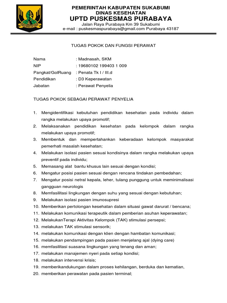 Uraian Tugas Perawat Puskesmas Tugas Pokok