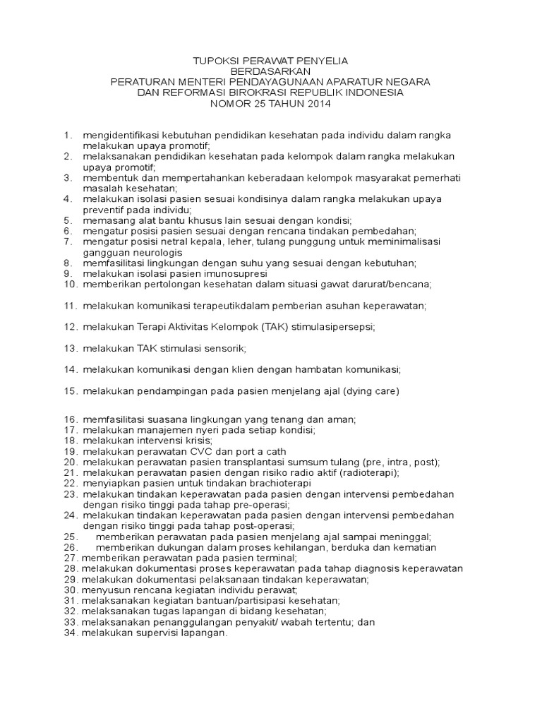 Permenpan 25 2014 Jabatan Fungsional Perawat Dan Angka Kreditnya