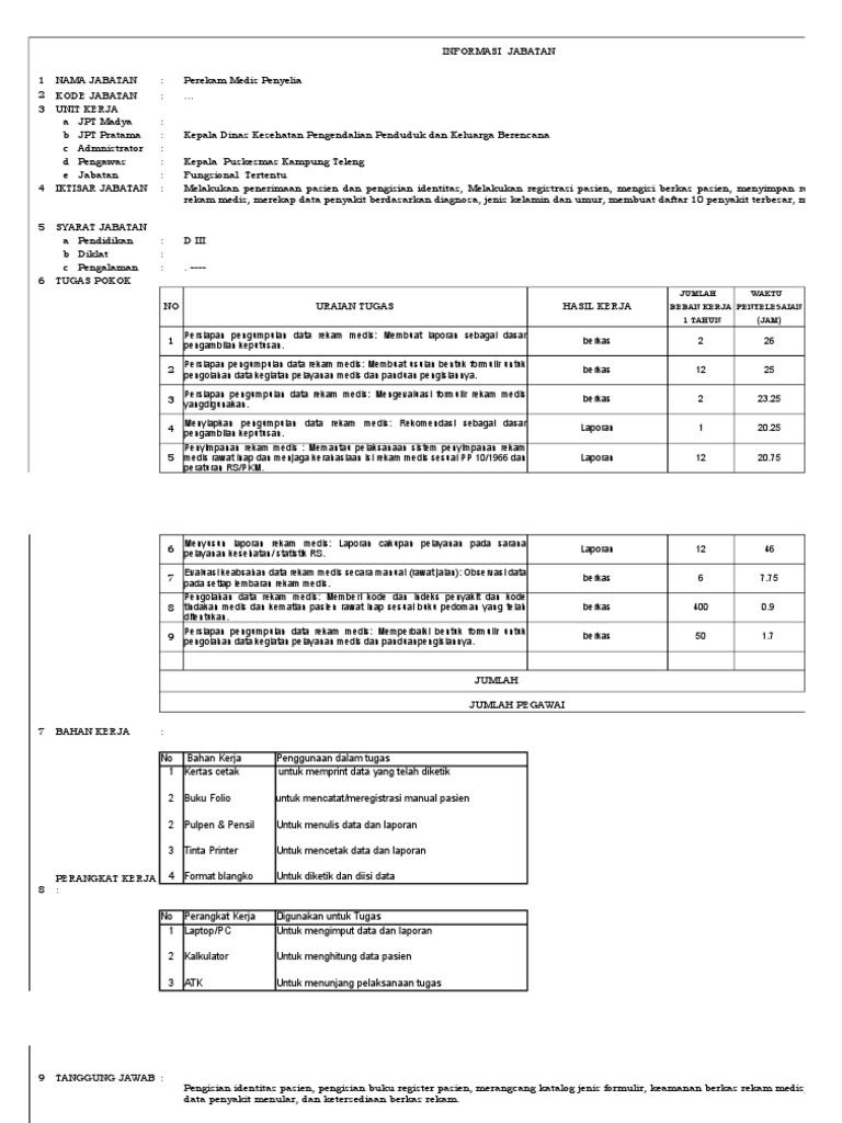 Uraian Tugas Perekam Medis Penyelia Tugas Pokok