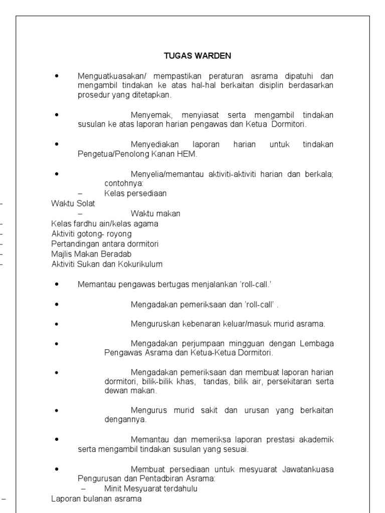 Tugas Tugas Warden