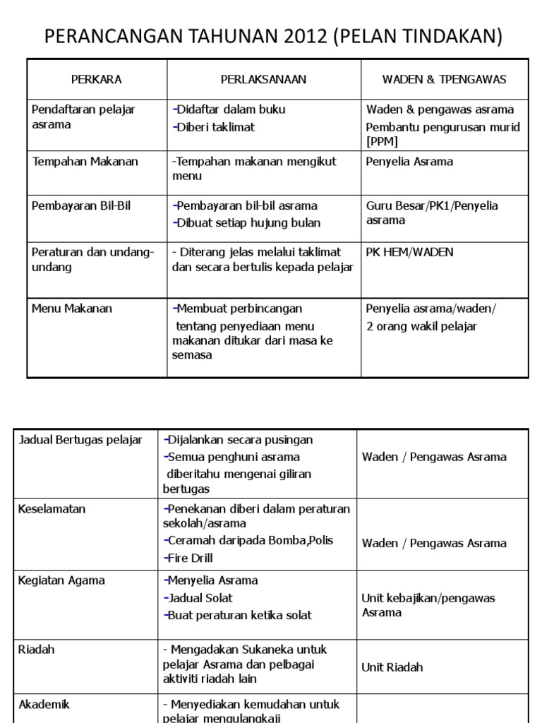 Perancangan Tahunan 2012 Pelan Tindakan